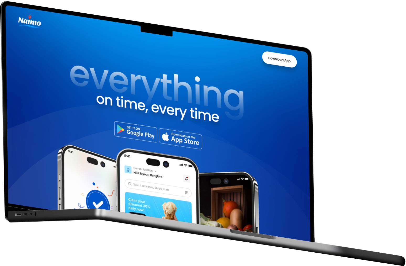 Naimo is a hyper-local quick commerce platform crafted to redefine neighborhood shopping through speed, convenience, and intuitive digital experiences. From strategy and UX to development and launch, the product was designed to streamline grocery discovery, real-time ordering, and doorstep delivery through a seamless mobile-first ecosystem. Focused on user convenience and scalable commerce interactions,